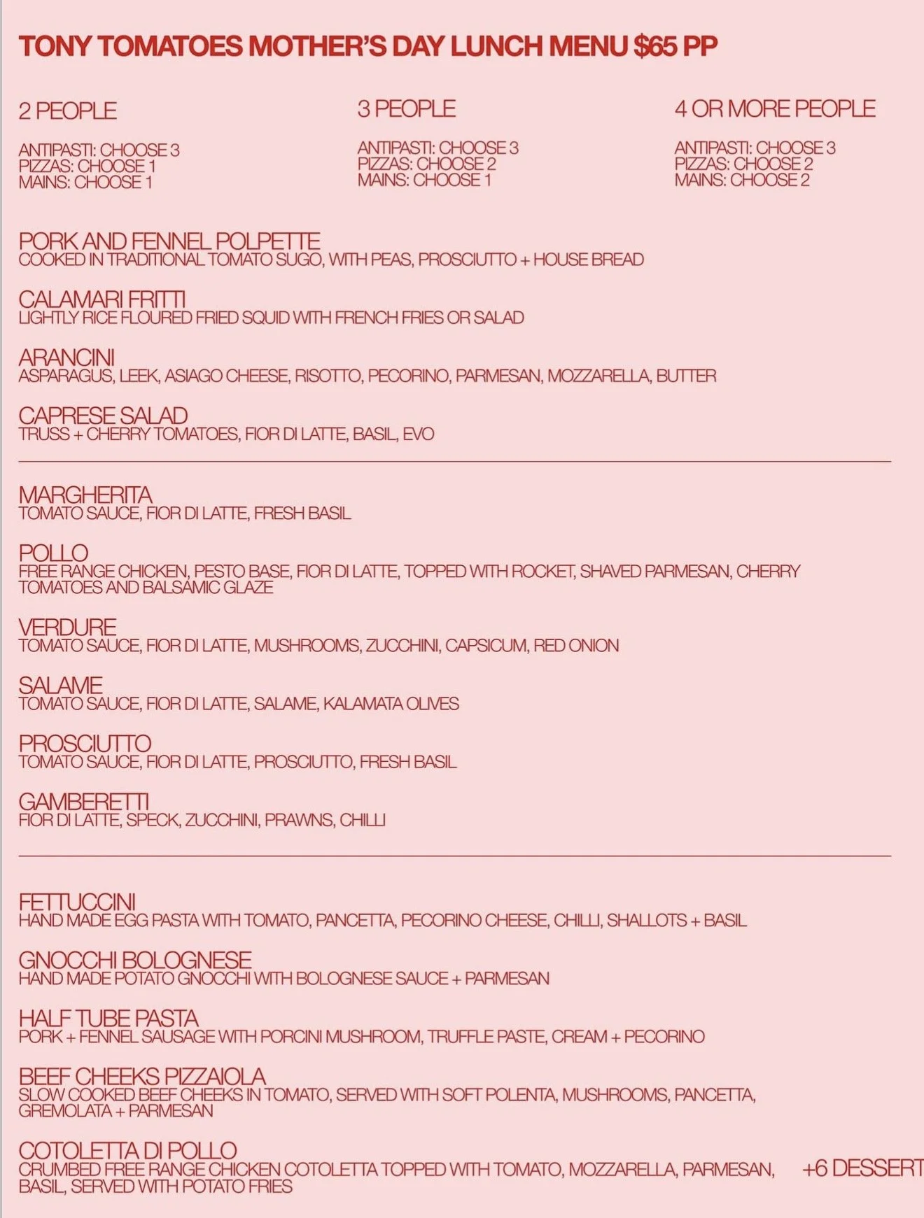 With an extensive wine list to match, Tony Tomatoes is 5/5
